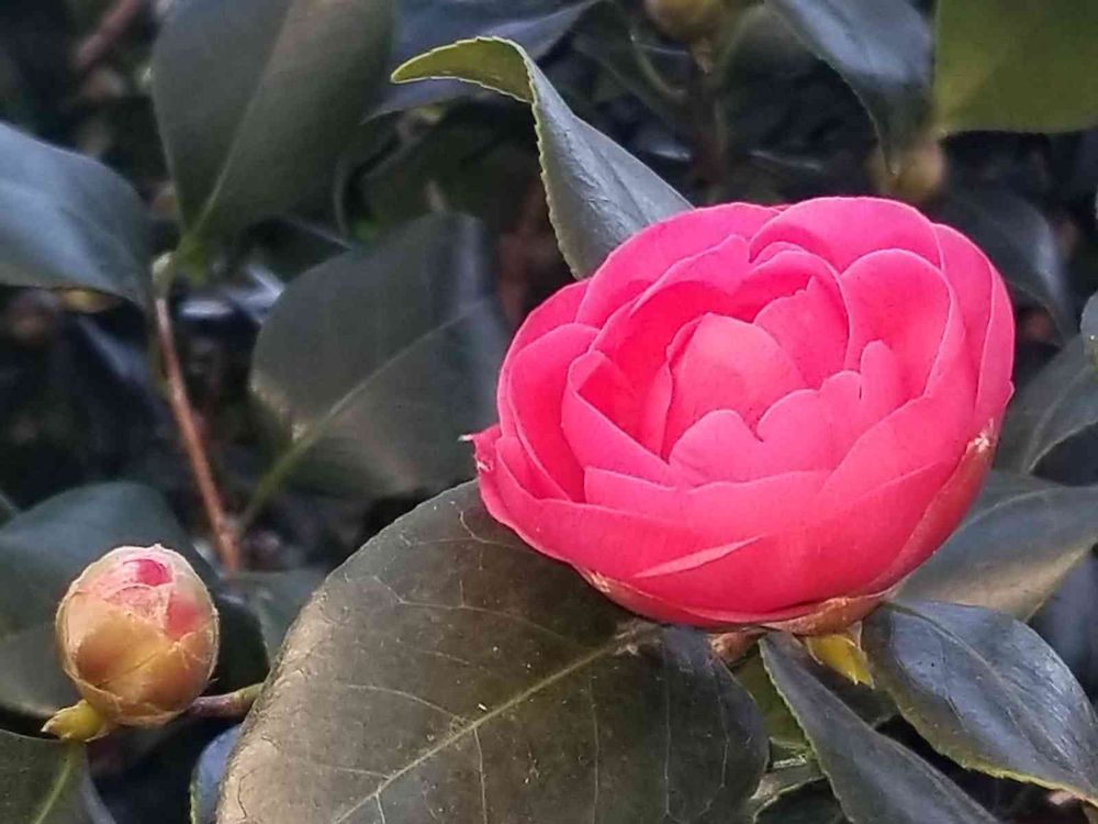 -1℃の寒い朝 椿がまん丸に開きかかっていま~す‼️😁😃😄😊