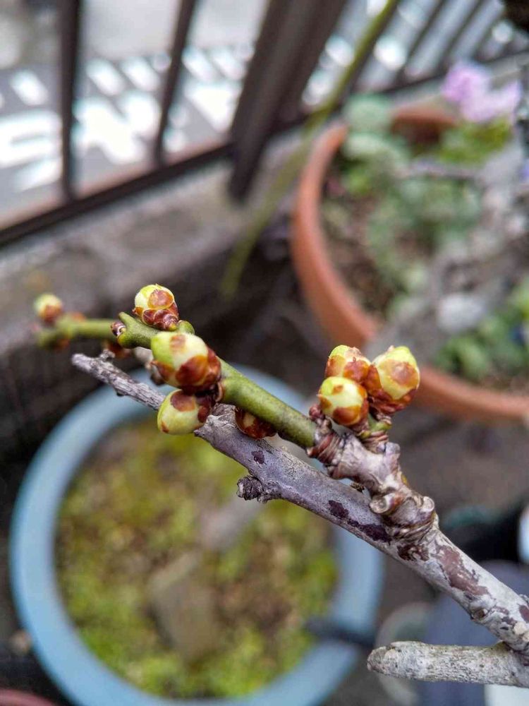 10年目の鉢植えの枝垂れ梅(白梅)にやっと蕾が…