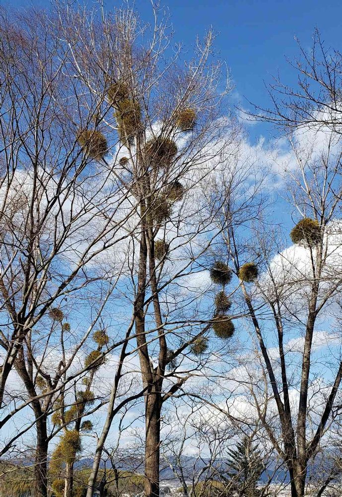 ヤドリギって。千葉の方では見ないのよね。ドイツや彦根にいった時、当たり前にくっついていてビックリしました