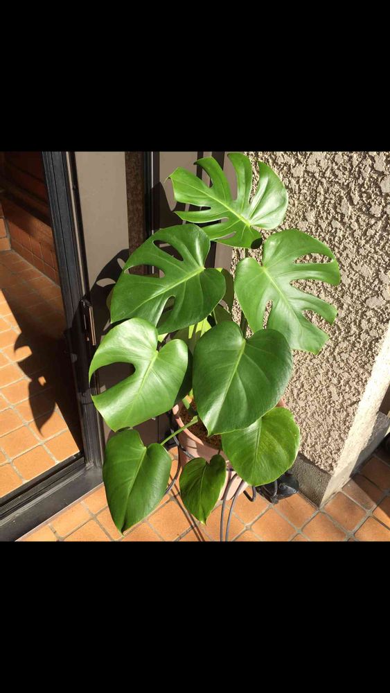 2020.春 我が家の巨大化したモンステラを 2鉢株分けしたうちのひとつです。この日は、とってもいいお天気なのでお外に出てもらいました。あとのひとつは、実姉の所に ストレリチアと物々交換しました。✌️