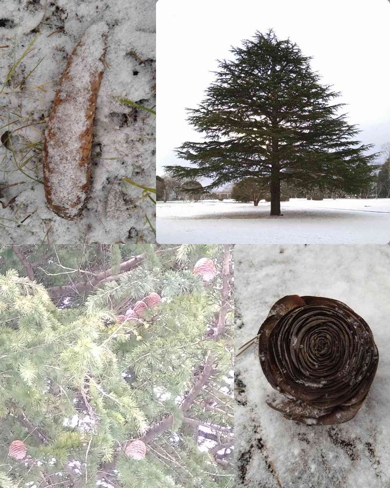 ドイツトウヒの実も、ヒマラヤスギ・シダーローズも、雪で寒そうです。
