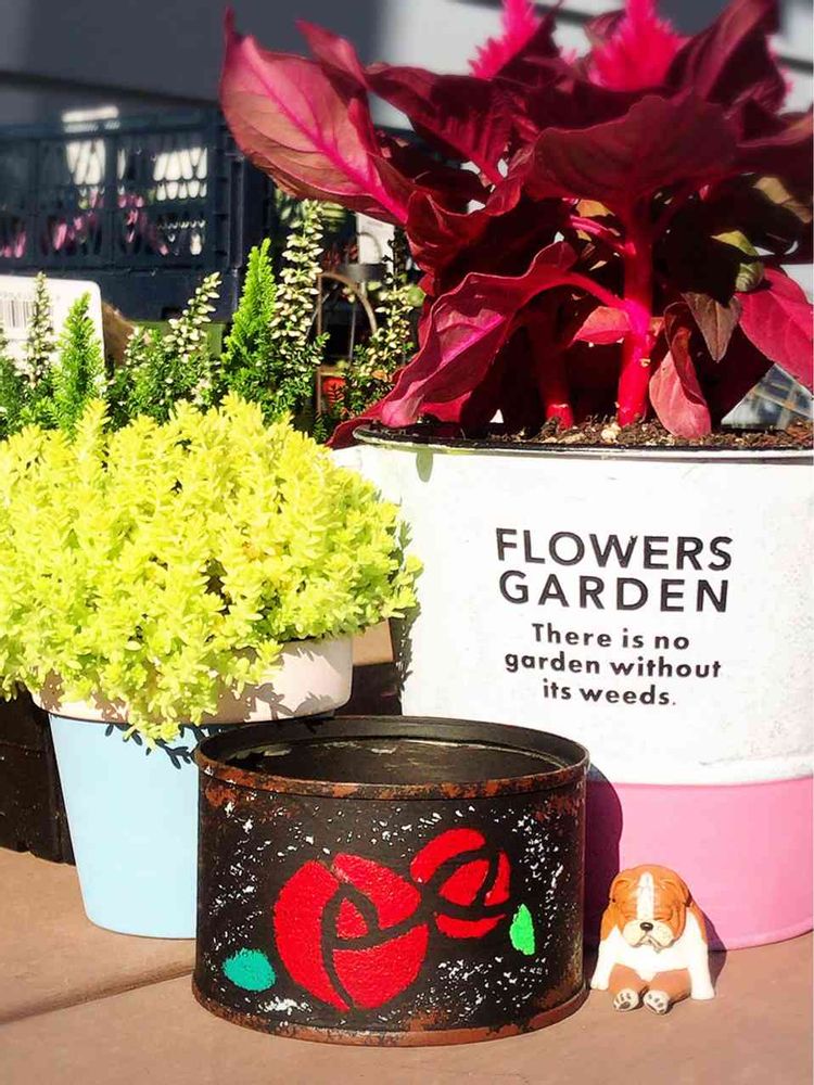 今日のpicは、皆さんの投稿でお見かけしたケイトウ💖買っちゃった😅だって綺麗な色だったんだもの😅それと この間作ったリメ缶🎶私のアイコンでも使っている バラ🌹のステンドグラス❣️