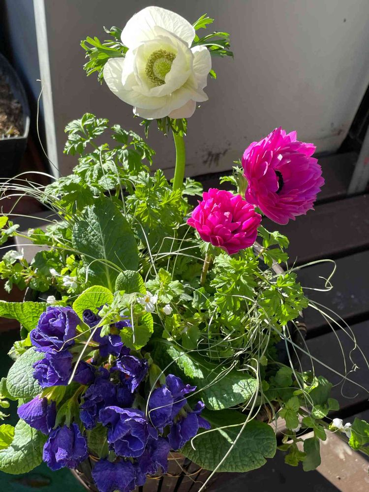 マリさんのアネモネも一目惚れしちゃいますね〜☺️✨ アネモネを2鉢入れた寄せ植え😋♪ステキです〜😆 思いつかなかった〜💦 贅沢に寄せ植えしたいですね!クリップしちゃいます〜😆🎶