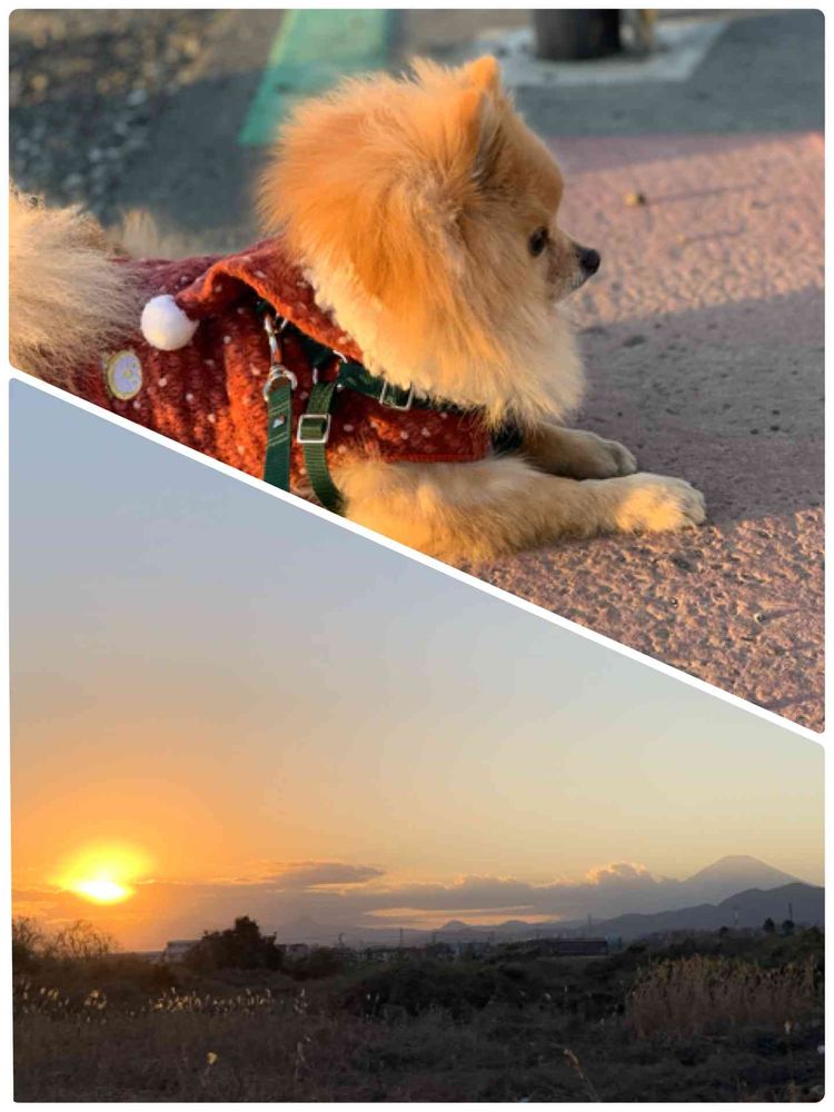綺麗な夕陽がラッキーちゃんを包んでる✨