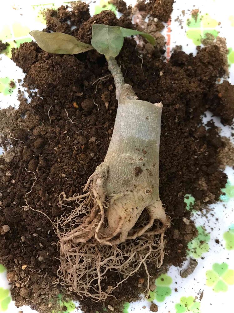 3日前、晴れた日に冬型塊根にお水をあげました。そこでうっかり休眠中のアデニウムにもたっぷり水遣りしてしまいました…