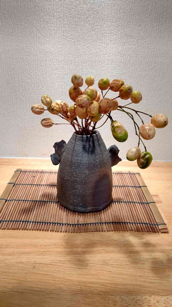 今年は花1輪(道端の野草や樹木)を目標に🤭焼締め、花を引き立てますね✨