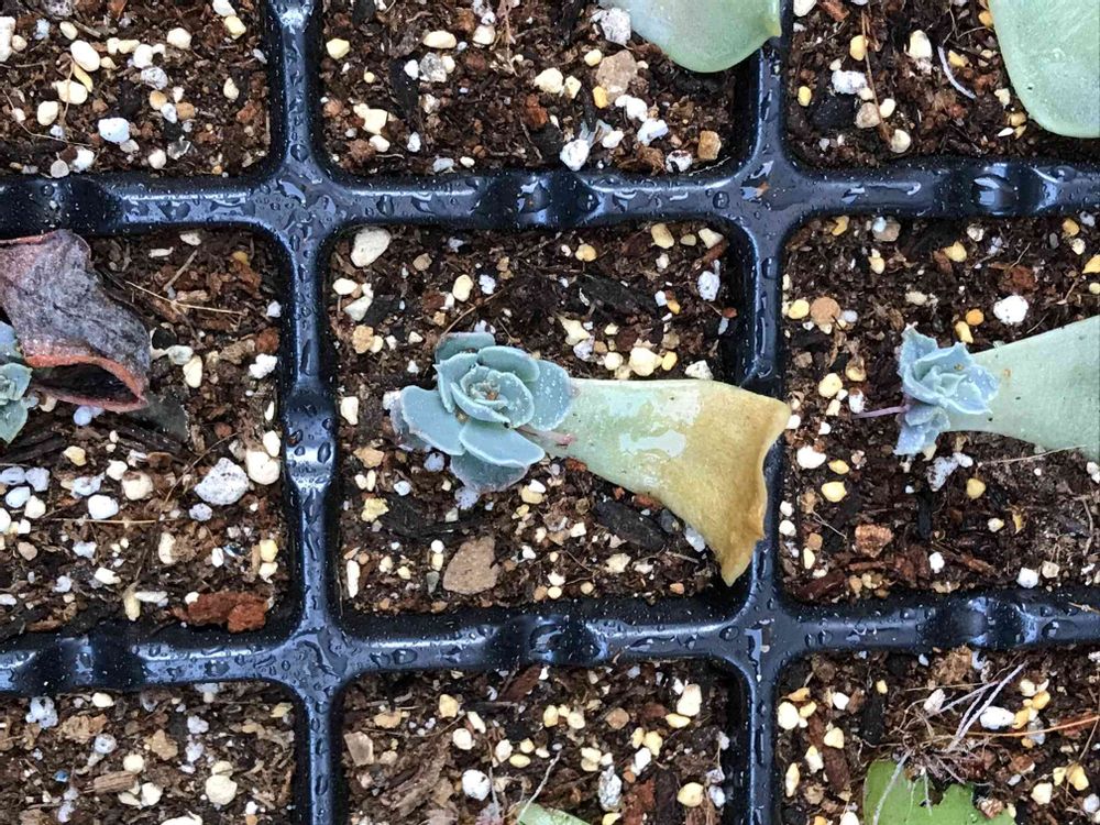 5月から育てているホワイトゴーストの葉挿しっ子順調に成長しています。