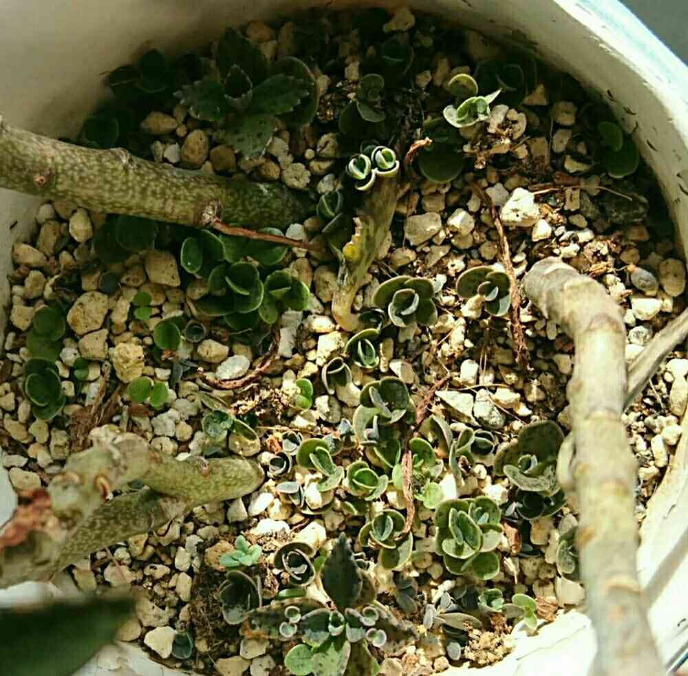 この子は不死鳥錦の赤ちゃん。ポロポロ落ちてそのままお母さんの鉢ですくすく育っています♪