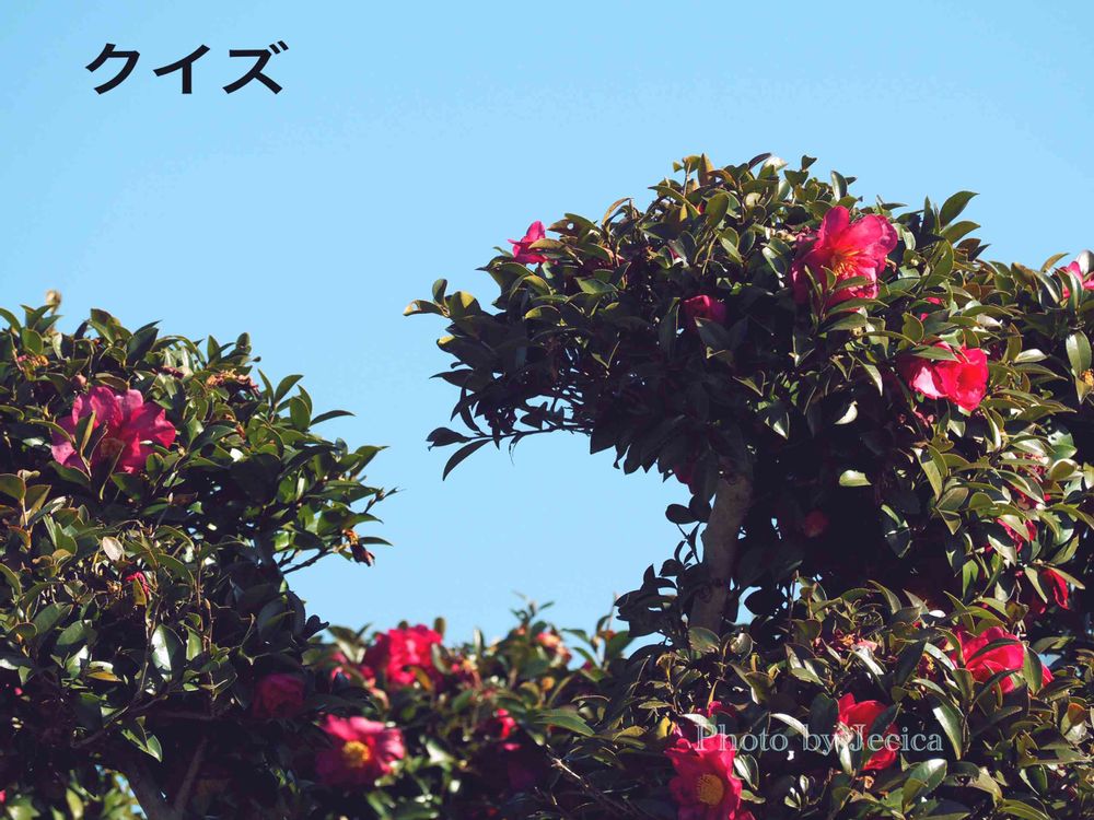 画面の中央の空と接している木立で一番上に半分見えている山茶花のお花のすぐ左横下にに左を向いて横向きにいませんか?
