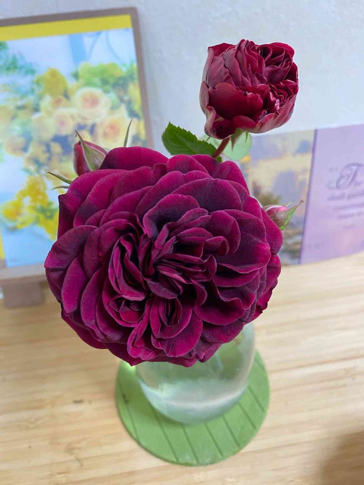 赤紫の花色に憧れて、手に入れた薔薇です💕