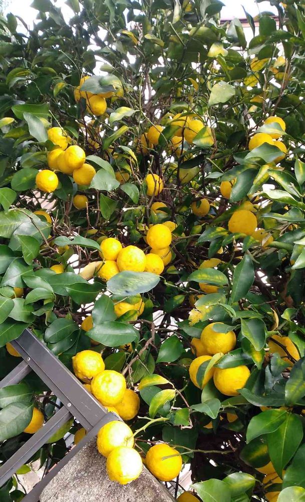 畑からの帰り道 小さな木なのに…た~くさん実がついていました!頂いたので・・初めて✨柚子味噌✨を作りました!😃美味しいですね!
