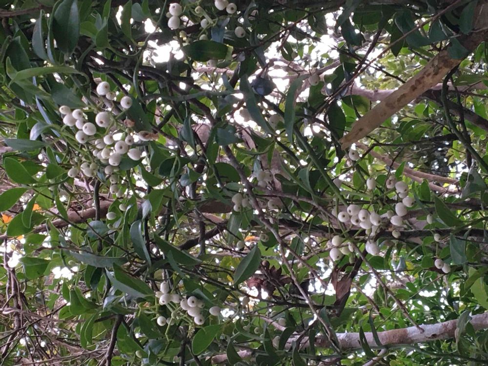 初めて見ました。白くて可愛い実がついていて、よく見ると他の木につる状のように巻き付いているこの子は誰ですか?