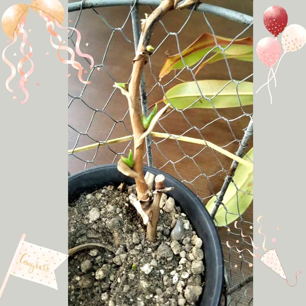 毎年冬に枯れてしまうウツボカズラ。今年は初めて新芽が出てきました❗️春まで頑張って欲しいです😊