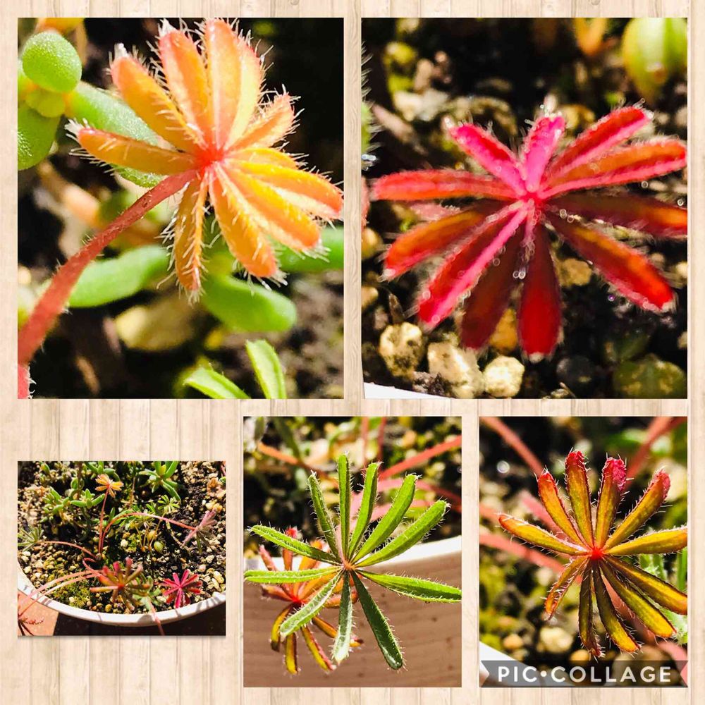 左下の鉢の片隅に10枚ぐらいの新芽が伸びて、色がカラフルで可愛いから🤳パシャリ👌