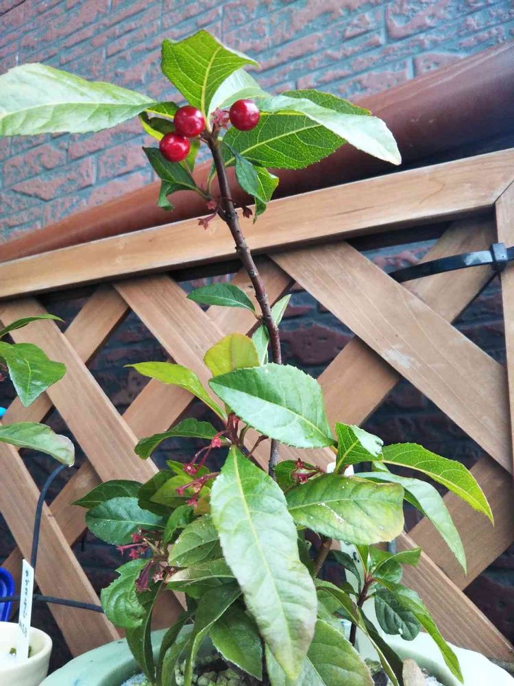 駐車場にかけてます。😀ヤブコウジ(その1)の鉢です。野鳥が飛来してしっかり食べてました。上手でしょ茎は残してますよ❗️もう少しで完食します。(その2は五個、その3は一個付いてます) 野鳥は📱撮影は👴腕では無理、向けたら飛んでった❗️ 見るだけに徹します。