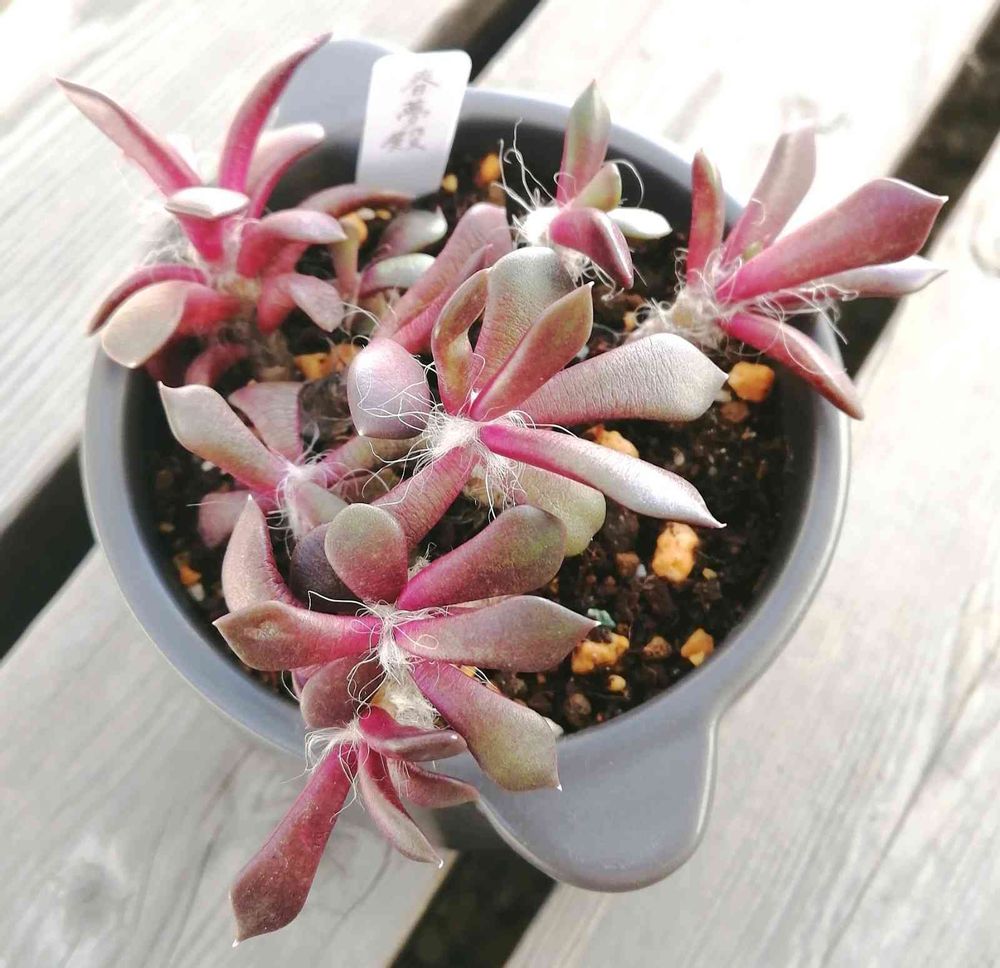 寒くて紅葉しちゃって色が分かりにくいですが、紅葉してないと葉の表グリーンで葉の裏だけマゼンダカラーの可愛い 子です💓