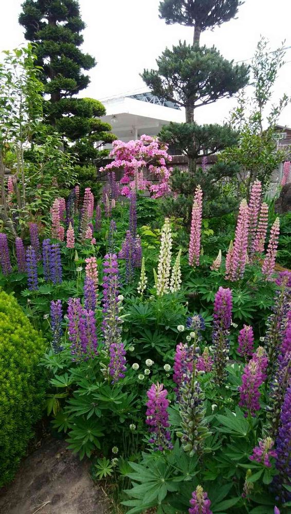 母が手入れできなくなって、私もたまにしか草取りしなかったらルピナス💜ガーデンになっていました😆