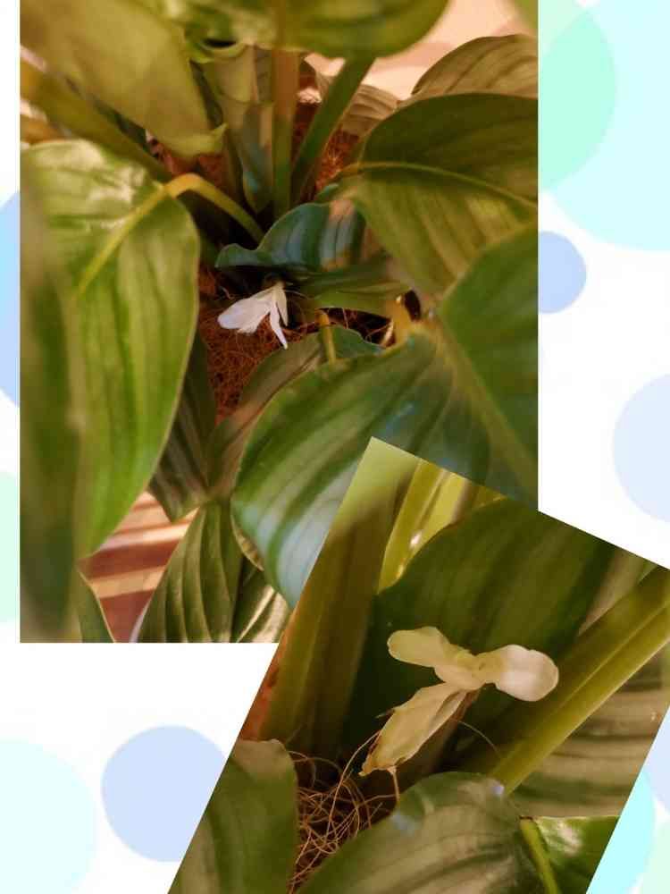 大きな葉っぱをかきわけて覗いてみたら、なんとー、花が咲いていました‼️