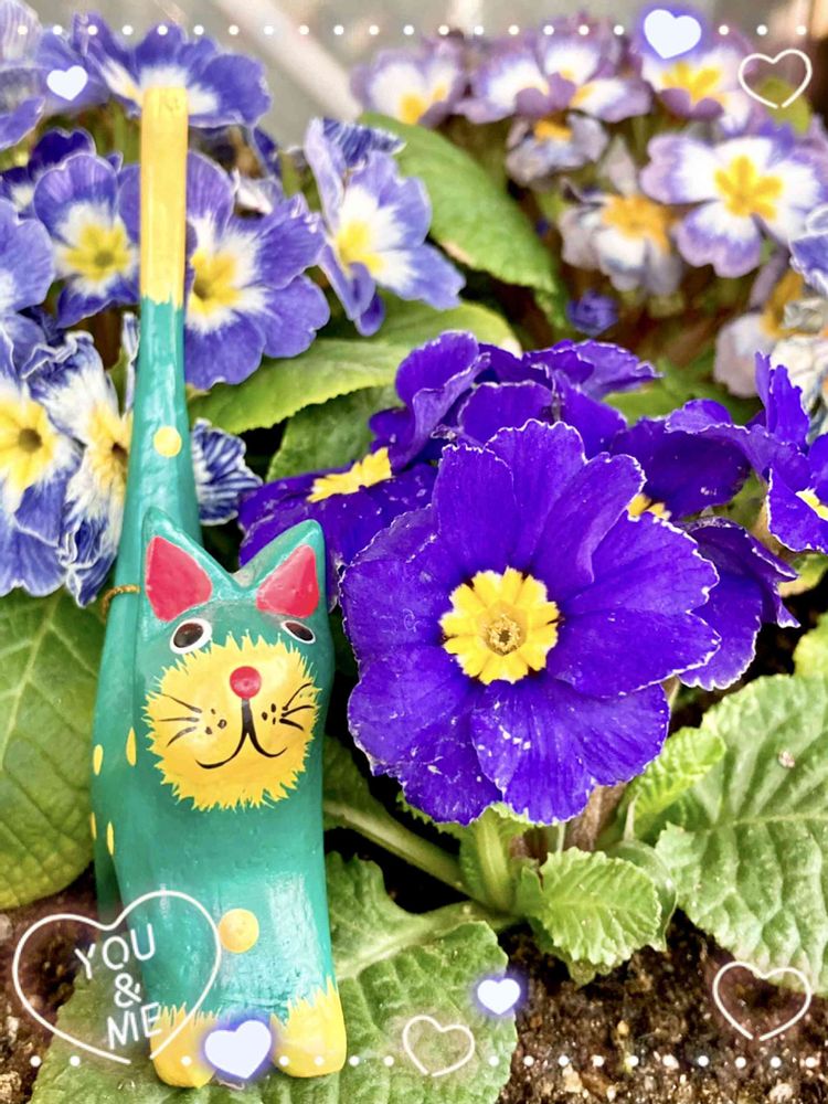 本当にプリムラは色々な色があるんだねー!この紫でも全部色が違うー!💜💜💙💙とっても素敵だニャーン(=^_^=)