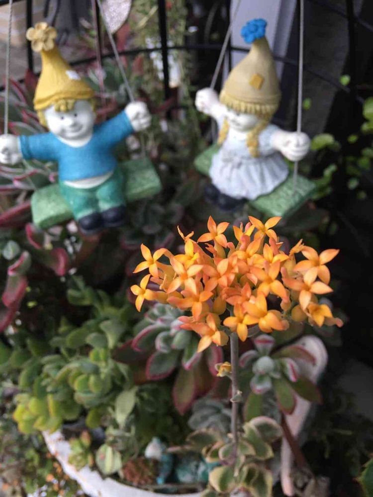 みつここさんのお庭にはいろんな陶器の人形があって楽しいですね❣️ 冬はやはり暖色系のお花ですね💕