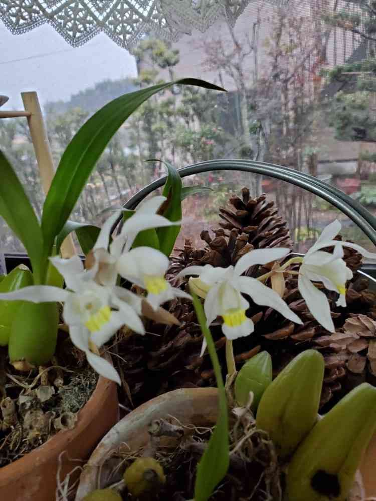 ガーデンケースから窓辺に移して眺めています。いい香り。手間のかからない蘭です。