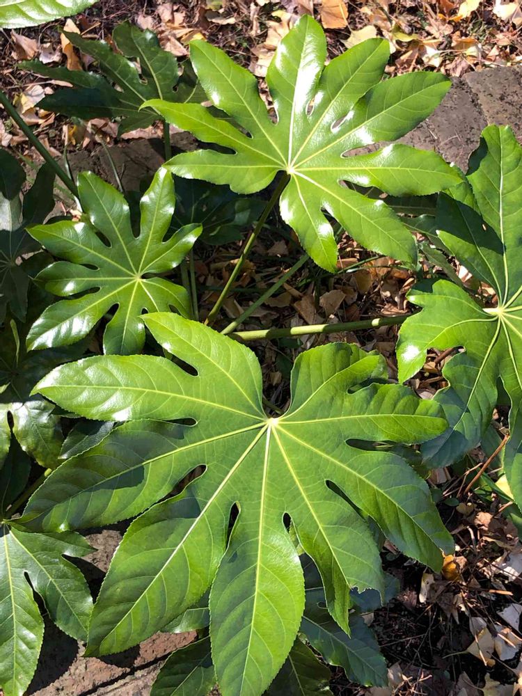 普段は、ヤツデは白い花をつけて、もっと渋い色合いの🌿を見てきたんですが、このヤツデで、ツルツルの光沢だったんですよ😊 天狗のうちわ👺、ウフッ(o^^o)❣️