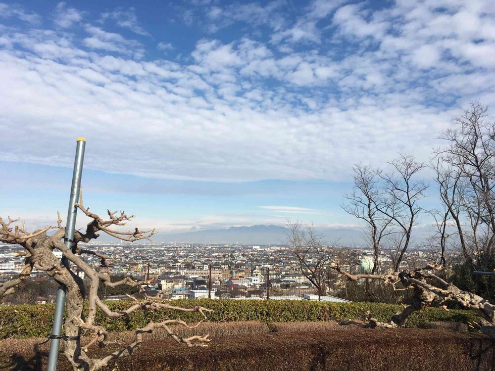 藤岡の藤の咲く丘から、赤城山を臨む‼️今日は風が無くて最高のお散歩日和でした❣️❣️左手前が藤の鉢の枝ですが、こんな大鉢が沢山あって、藤棚もどんどん増えてます‼️是非5月にはお出掛け下さいね❣️❣️