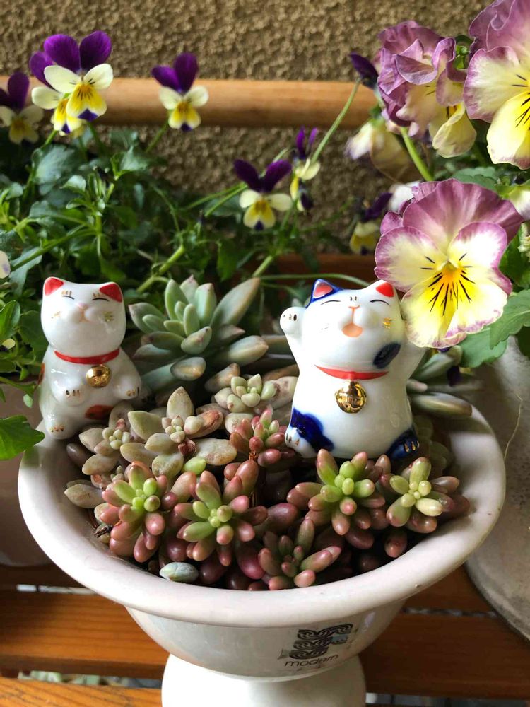 ぷりぷり多肉🍀ちゃんたちに、こーんなにっこにこ笑顔の猫ちゃんで、縁起いいわ🌹✨