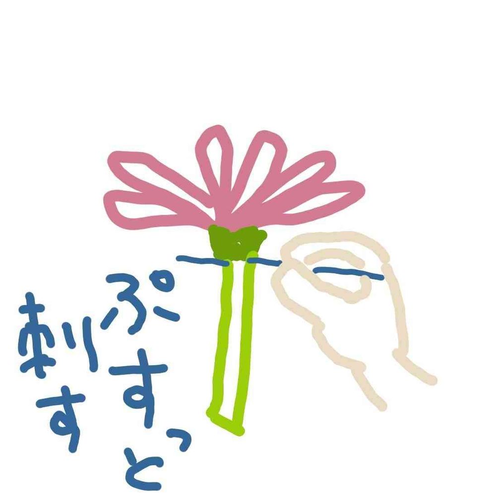 ガーベラがすぐ反り返ってクタリとしてしまうことに悩む方々に届け✨スマホに指で描いたので、へたくそですがわかりますか…