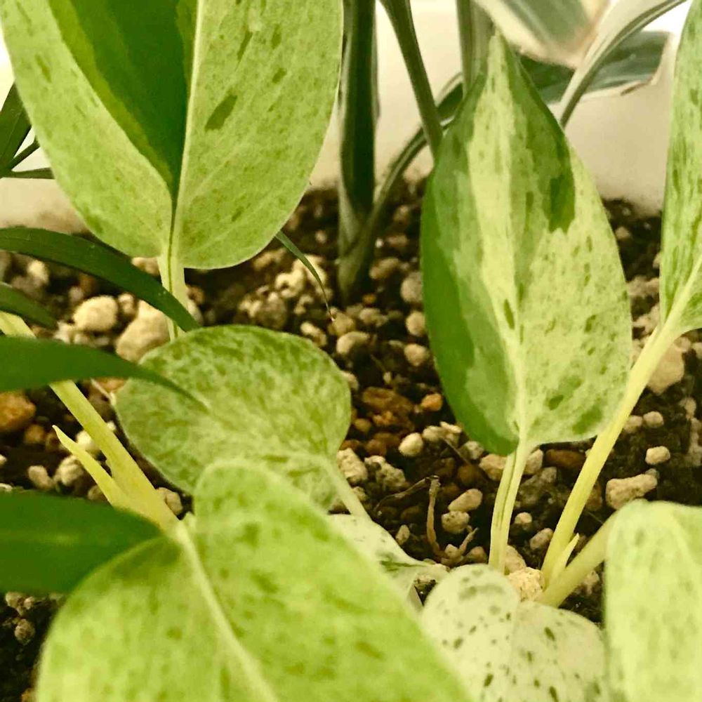 観葉植物の寄せ植えのポトスから、新葉が出ています。