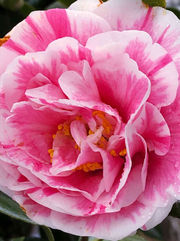 2021- 1 -23(土) 雨☔️ 小さい庭の椿 は開きました💕いちばん花🌸です。覗き込めない両手を伸ばして2m位の高さに咲いています🙄 12月19日から硬い蕾をpic! 今日で終了します