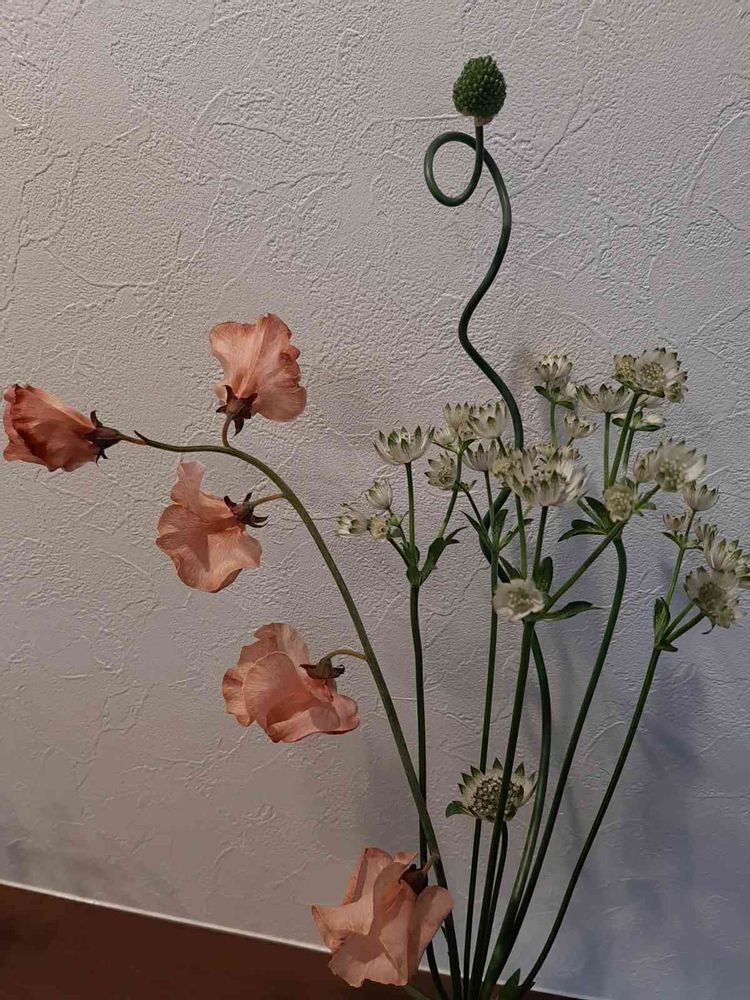 アストランチア、プレゼントされたスイートピーと合わせて、嬉しそうに水切りして飾っていました。