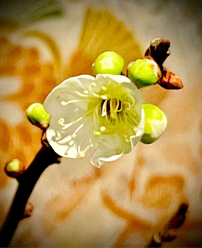綺麗な白い?梅ですね?生成ぽい色なんですかね!とても、素敵です!