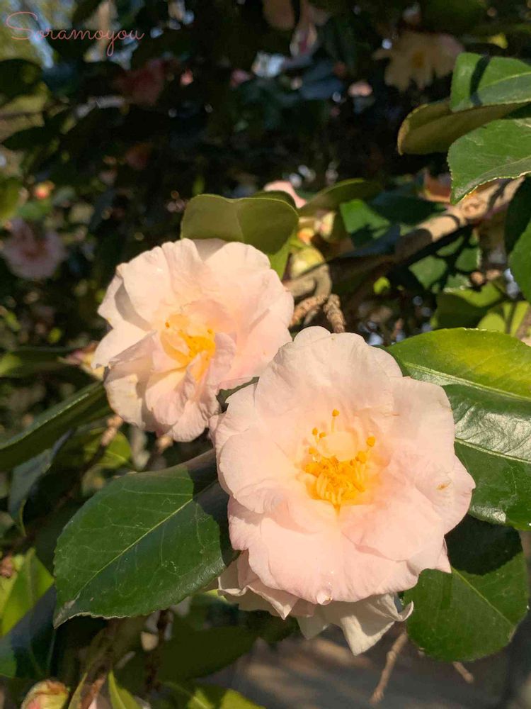 優しい色の椿の花、ふんわり可愛い〜💕😍