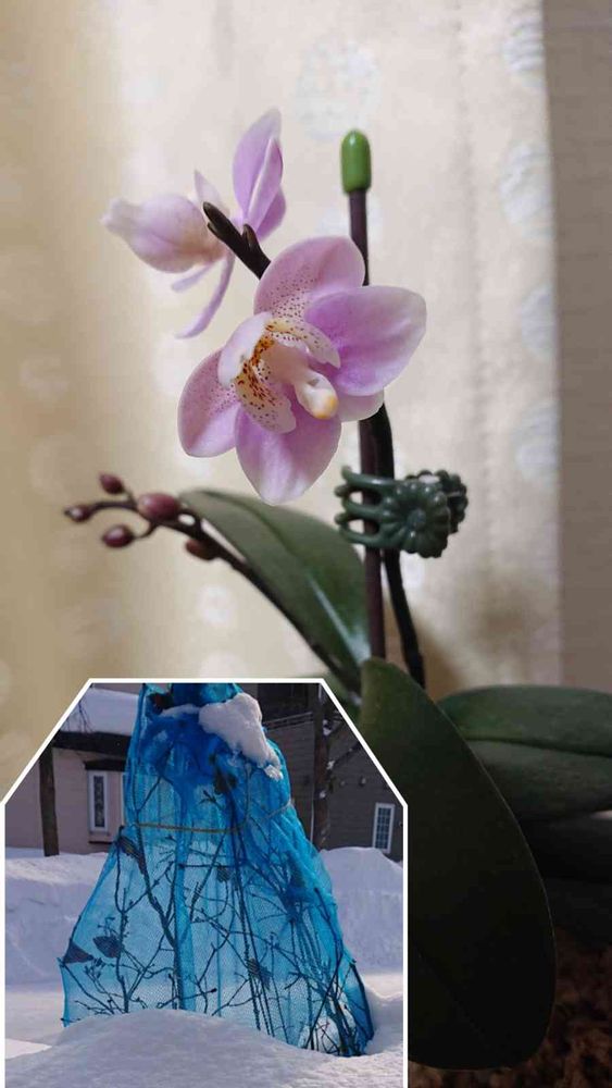 雪が降る前にリビングに移動***🙌花が咲きました💞もぅ1つの枝にはさらに蕾がたくさんあって今はけっこうパンパンになっています🤗さらに楽しみだわぁ🥰