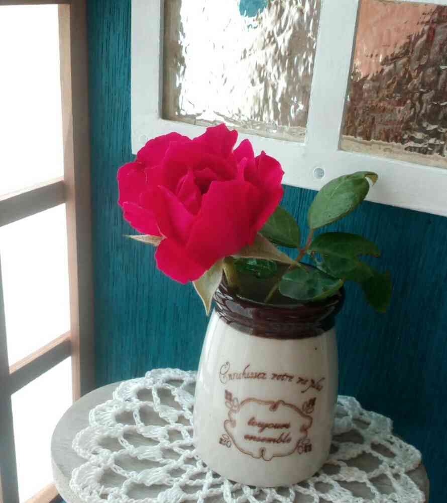 今朝のバラの剪定で可哀想なのでお部屋に٩(๑❛ᴗ❛๑)۶ね。ありがとう💖