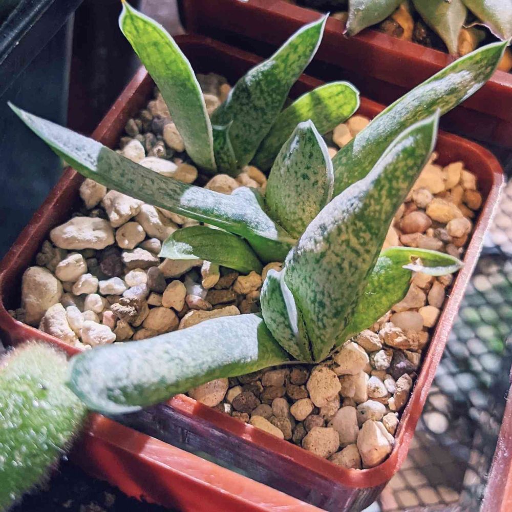 ガステリアは放置してても元気で子株出してきたりしてくれるし、小さくても何だか年月重ねてきたような渋さとかっこよさがあります😎かっこいい錦が!と思ったら、すぐ売り切れ😱また出ないかなー