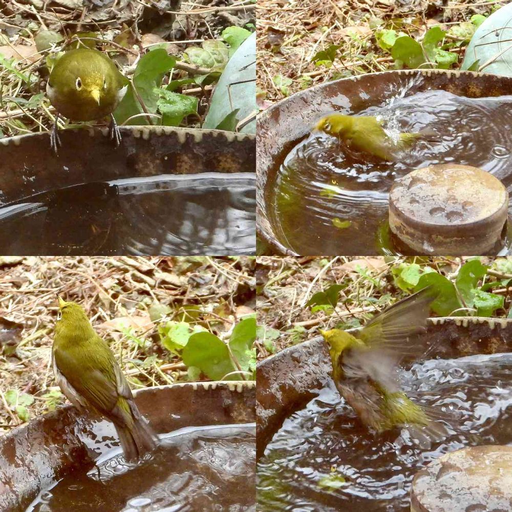 メジロの水浴び 初めて見ました~😆感動😍💓