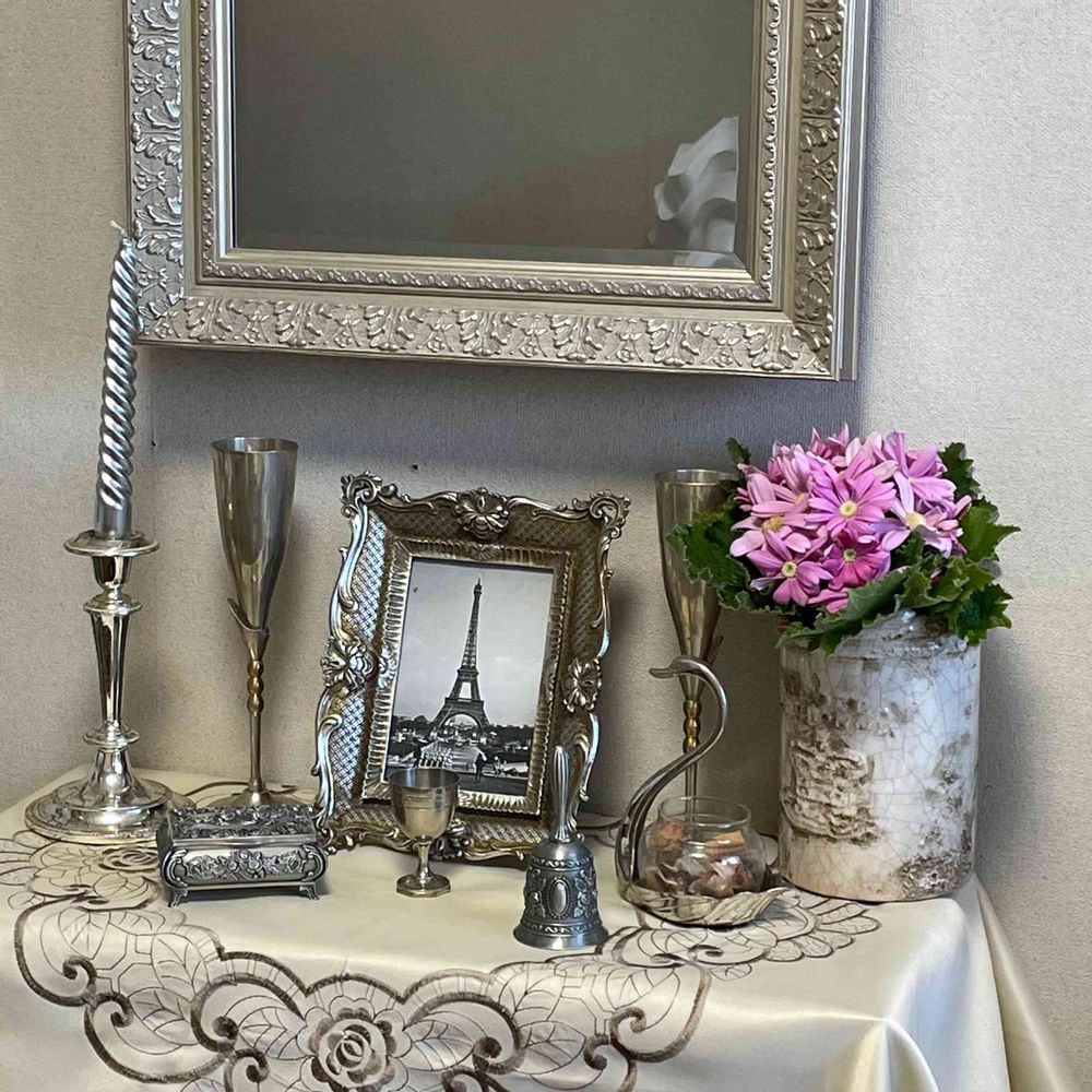 壁掛け仏壇「鏡壇ミラリエ」に今日(1/24)の誕生花の「サイネリア(富貴菊)」を飾ってみました。