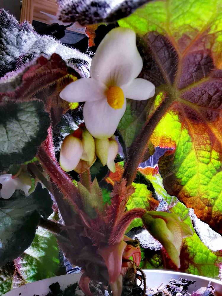 ベゴニアの森。レックスベゴニアのエスカルゴが開花。