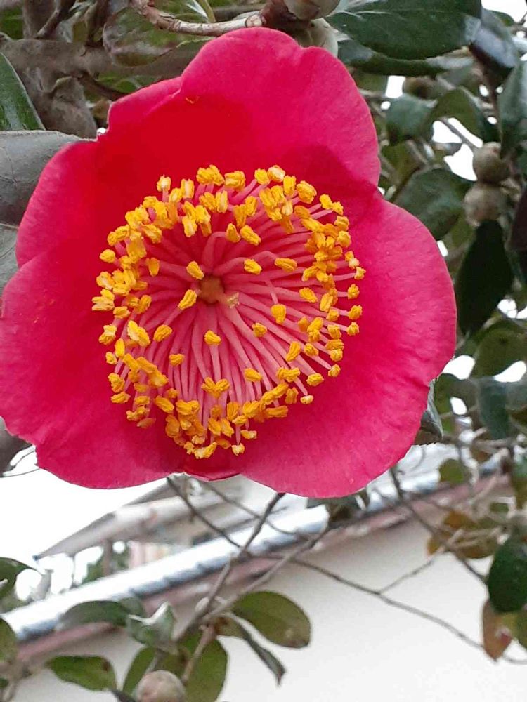 こん椿凄かね、珍か何ちゅう種類やろうか、お宮さんに有るくらいやから、