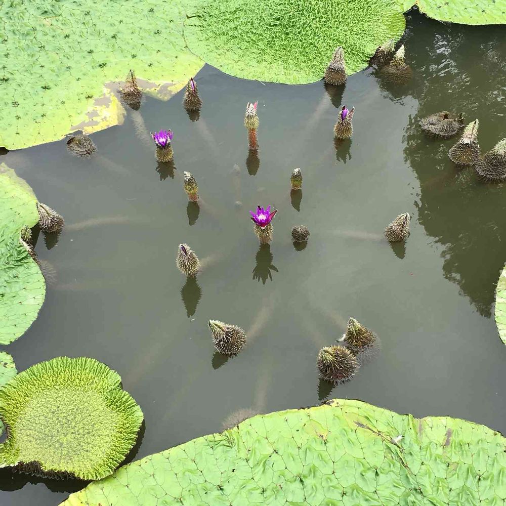スイレン科でもハスとは葉も花も果実も違ってトゲトゲな事から「オニバス」と言う名前がついたそうです。