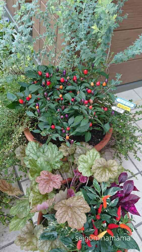 こないだ買ってきたカラフルな唐辛子を寄せ植えにしてみました (*´∀`)
