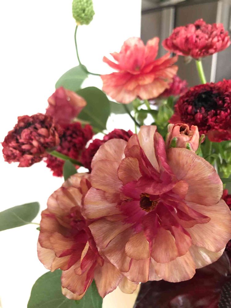 珍しく大人レッドな花束を飾ってみたけど、癒し✨