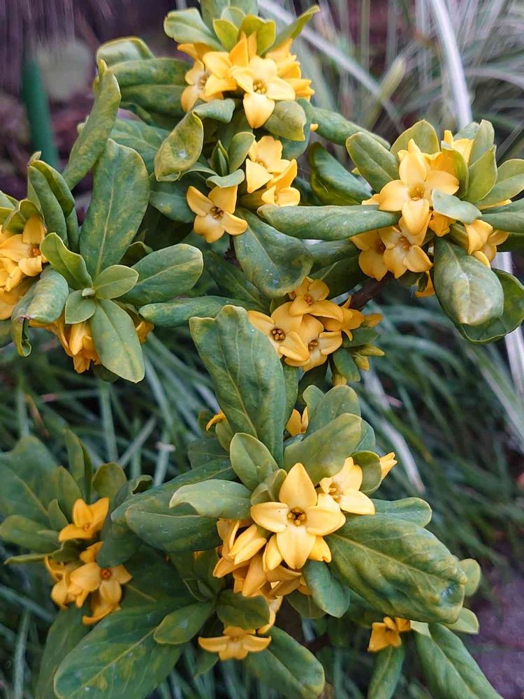 黄花沈丁花、初めて見ました。白ではないんですね。🥰