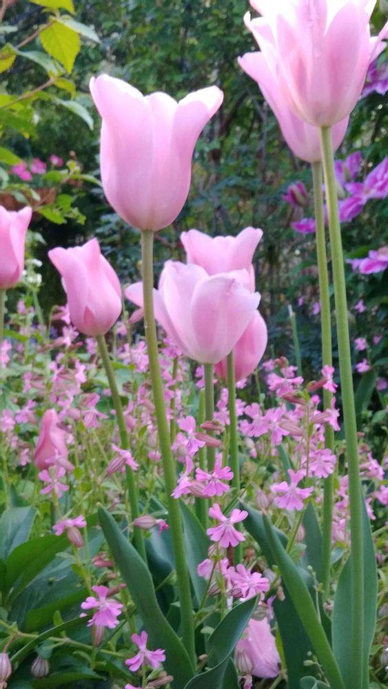 ピンクのチューリップ🌷が可愛く咲いているお庭💕