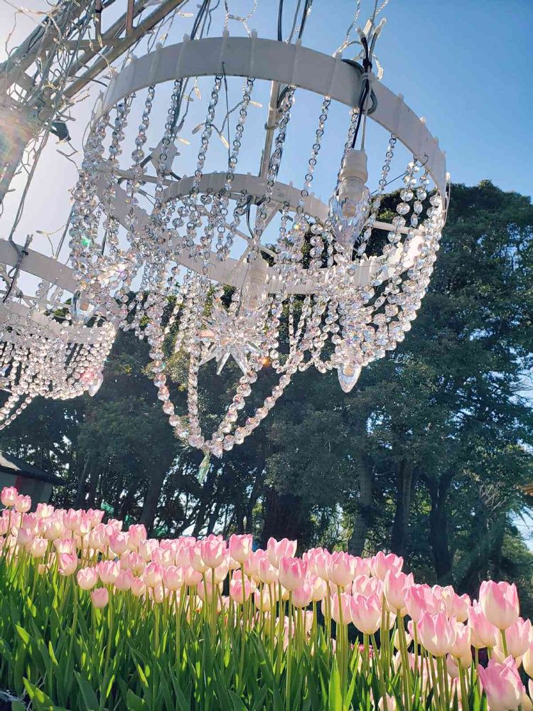 、テーマが湘南の宝石💎だから江の島コッキング苑全体がキラキラ宝石のようです。夜はこのシヤンでリアが輝いて可愛いチューリップも少しずつ妖艶なかんじになりました🎵