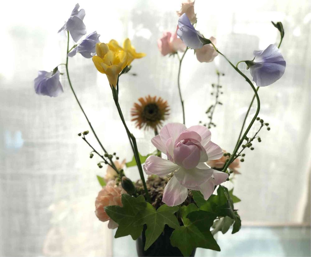この時期は切花も長持ちするのが、良いですね!少しずつ茎が短くなることで全体のシルエットが変わり、楽しいです。
