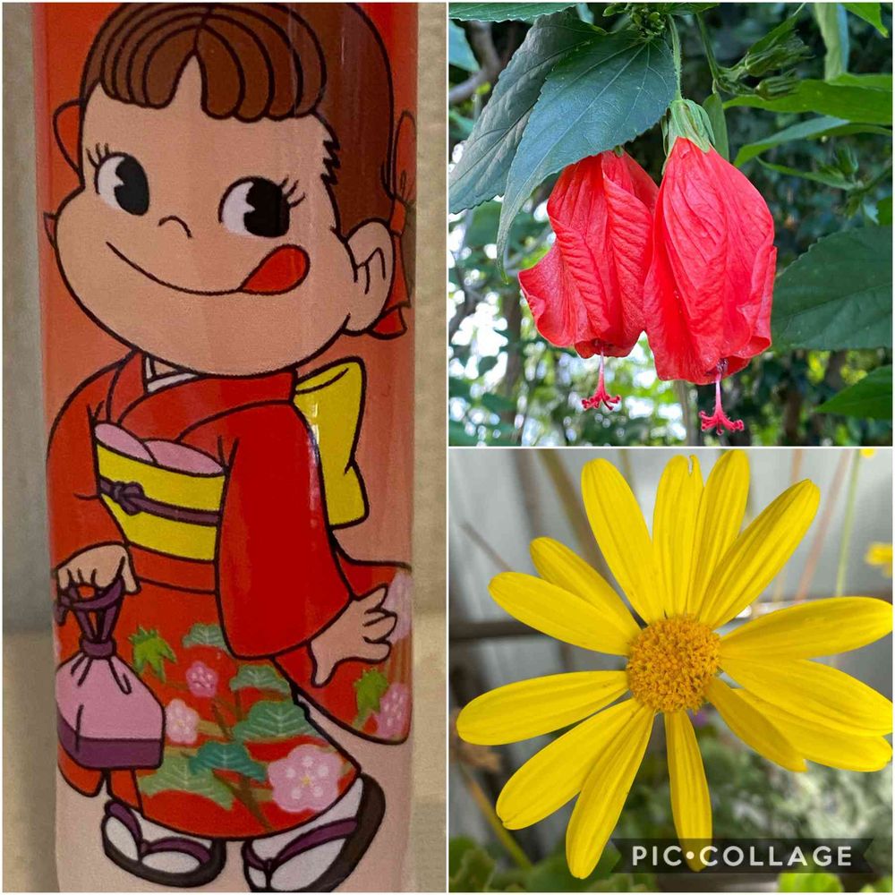 ペコちゃんの着物と帯の色にお花コラボ❤️💛してみました〜😆