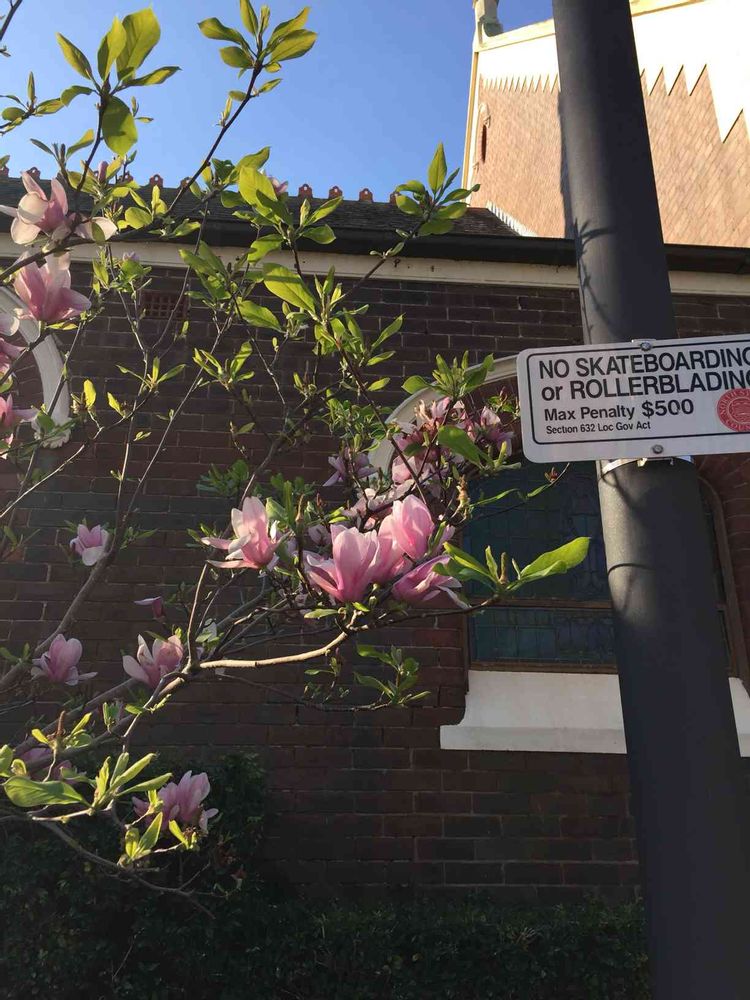 朝散歩していたら花の咲いている庭木を見つけました。家で名前を調べたらマグノリアだとわかりました。たぶん。